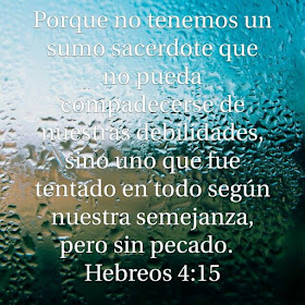 Jesús, el Hijo de Dios, es nuestro gran Sumo sacerdote que ha entrado en el cielo. Por eso debemos seguir firmes en la fe que profesamos. Pues nuestro Sumo sacerdote puede compadecerse de nuestra debilidad, porque él también estuvo sometido a las mismas pruebas que nosotros; sólo que él jamás pecó. Hebreos 4:14–15